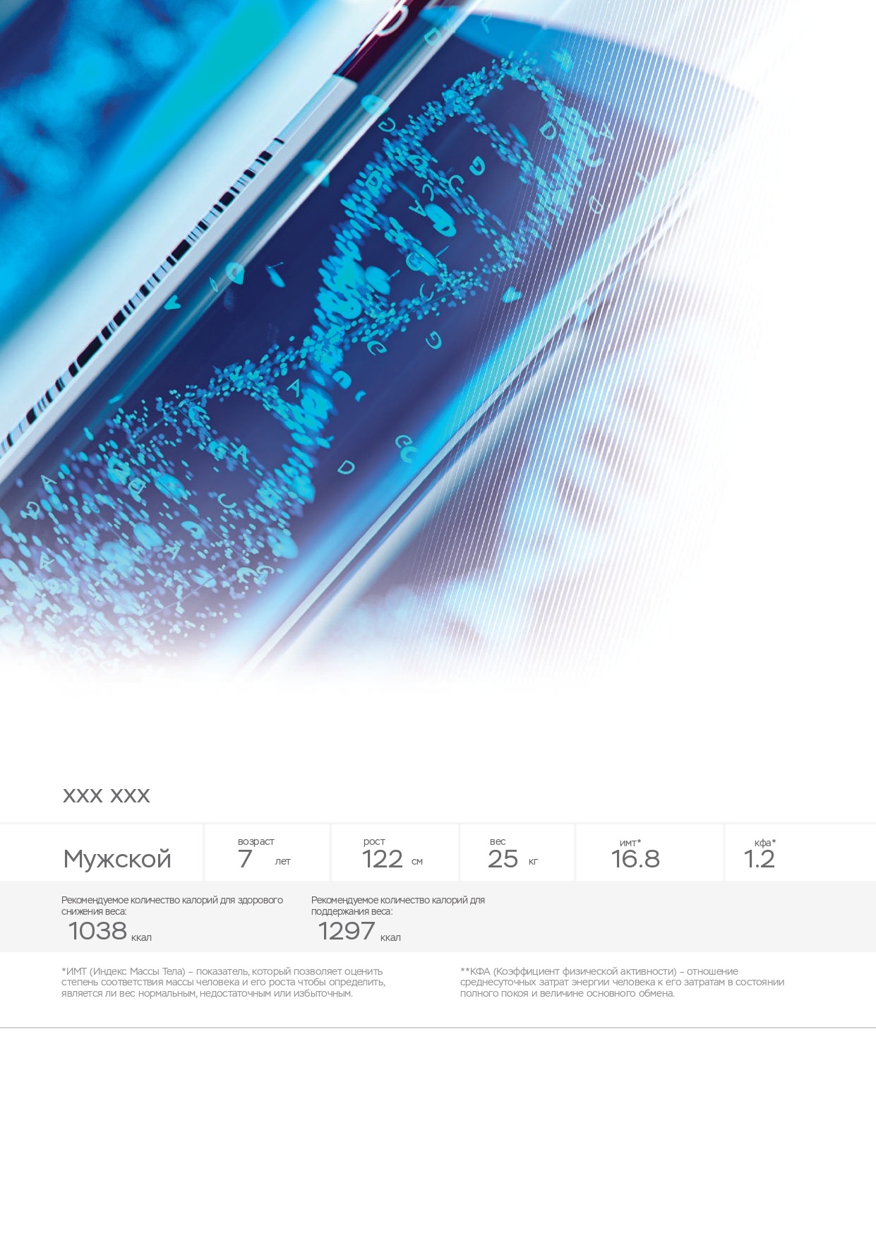 Помните, что помимо физических нагрузок, большую роль играет питание. Вы также можете пройти ДНК-тест на диету, который покажет, каких веществ не хватает в организме, какие организм усваивает лучше, а какие хуже и многое другое.